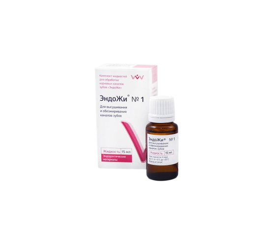 • «ЭНДОЖИ №1» - для высушивания и обезжиривания каналов, не содержит диэтилового эфира и этанола, легко испаряется. Высушивание и обезжиривание каналов происходит в течение 1 минуты без применения осушающей струи сжатого воздуха.