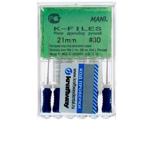 К-файл № 30 Mani – специальный эндодонтический инструмент, который используется при лечении сложных случаев кариеса. С его помощью эффективно очищается, расширяется и формуется зубной канал, что позволяет подготовить его к дальнейшей обработке.
