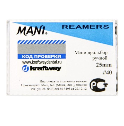 Ример № 40 Mani используется для очистки зубных каналов для их дальнейшего пломбирования. Этот ручной инструмент позволяет полностью пройти канал при помощи вращательных и поступательных движений.